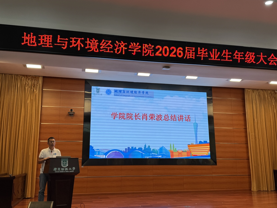 为帮助2026届毕业生明确未来方向,做好学业与职业规划,充分调动就业积极性,地理与环境经济学院于2025年10月22日下午在勤学楼408召开2026届本科毕业生年级大会暨就业动员会。学院党委书记陈莎莉、院长肖荣波等党政领导班子成员、系主任、毕业班班主任、辅导员、优秀校友代表以及2026届全体本科毕业生共同参会。会议由学院党委副书记甘乐乐主持。