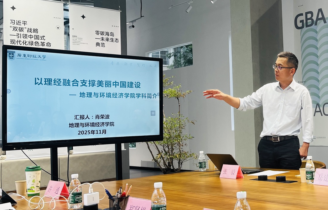 2025年11月7日,地理与环境经济学院于广州校区花圃楼一楼会议室组织召开专家指导会议,围绕学科转型与服务绿色发展战略主题,特邀广东省人民政府参事岳建华、民进广东省委会主委鲁修禄莅临指导。校党委书记郑贤操出席会议并讲话。会议由地理与环境经济学院院长肖荣波主持,广东开明粤港澳碳中和研究院副院长杨丽、学院副院长吴艳艳及教师代表共同参会。