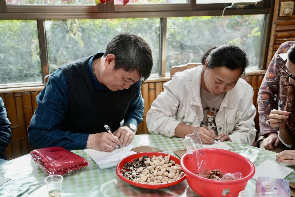 夜幕初垂,地派农庄华灯璀璨,乡野静谧与盛典氛围交相辉映。这是一场专属于地环学院奋斗者的年度盛会,也是一场校地情谊在龙门大地上的生动书写。晚会正式启幕前,一份充满巧思与期待的“时光礼物”悄然开启——主持人向每位老师分发了“时光胶囊”信笺,邀请大家郑重写下对2026年的美好期许与个人目标,并现场封存,相约来年此时共同开启、彼此见证成长。简洁而庄重的仪式,为整场晚会铺陈出面向未来的温暖底色。